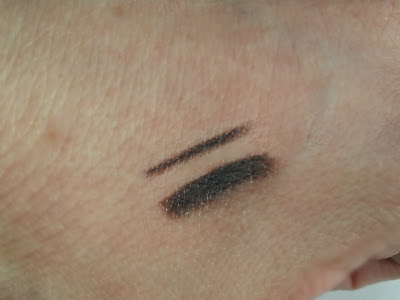 When I first saw these, I thought they would be very soft and smudgy, but they're not. They are actually a little on the stiff side, which makes them easy to control, but not so stiff that it pulls on your eyelids. I was able to make a thin line using the point, or a thick line by using the edge. Also, this grabbed onto the skin pretty well, has great staying power, and didn't smudge underneath my eyes all over the place.